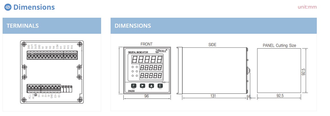 Thông số kỹ thuật Bộ hiển thị loadcell DN100;DN200