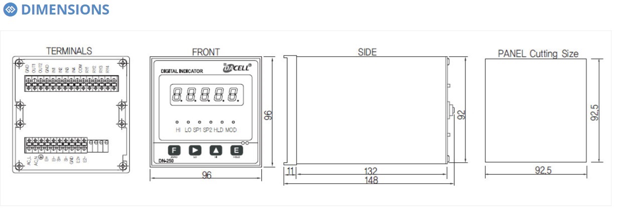 Thông số kỹ thuật Bộ hiển thị loadcell Dacell DN150;DN250